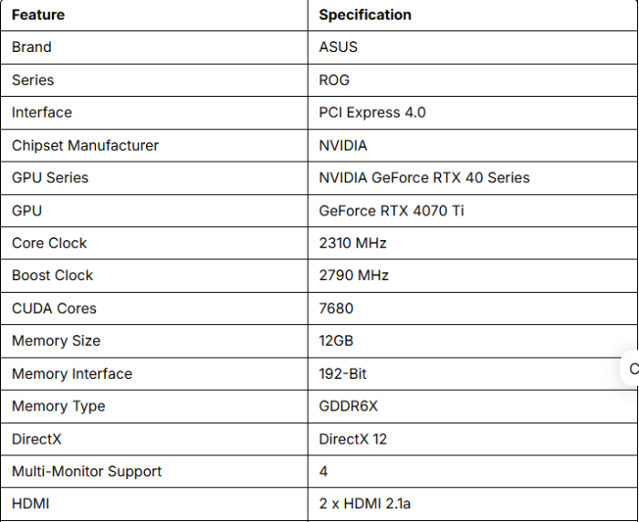 ASUS ROG Strix NVIDIA GeForce RTX 4070 Ti OC Edition